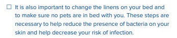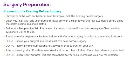 Bronson health says it’s okay to have pets in the bed two days before surgery, but not the day before (because that’s how cross-species microbiome decolonization works, right?).