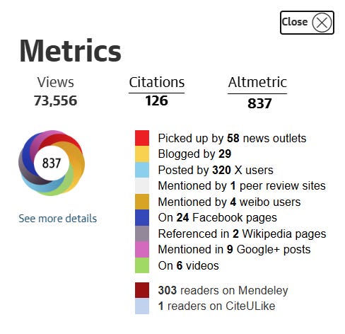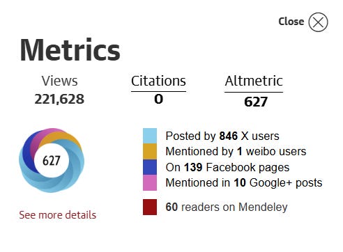 Over a decade later, it looks like it has received plenty of media attention (see Altmetric below)… The article has been veiwed over 200,000 times… And we wonder why outdated ideas die hard.